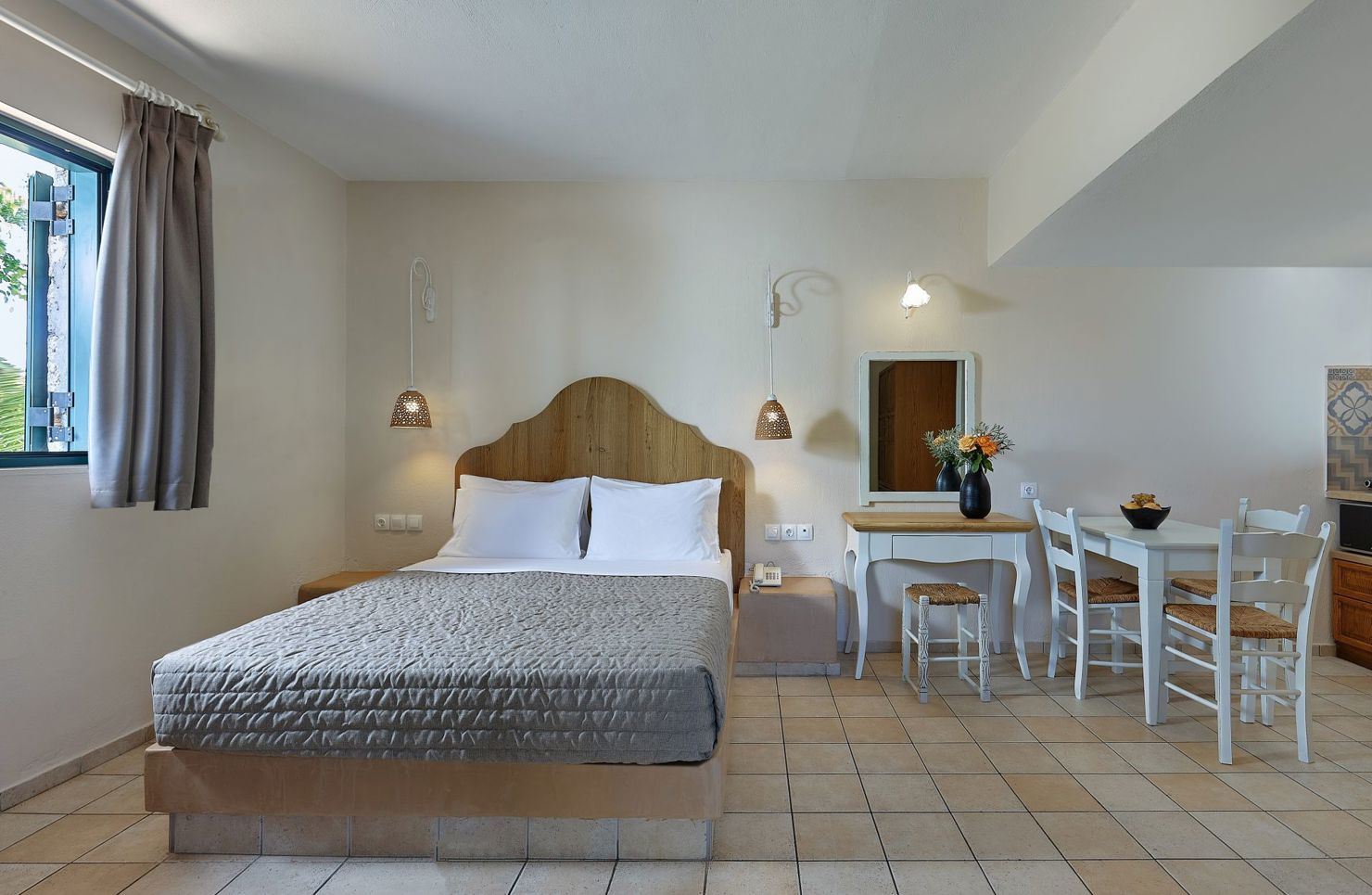 Superior Studios are situated either on the ground floor, complete with a private terrace, or on the first floor, featuring a balcony—perfect spots to unwind and take in the views.